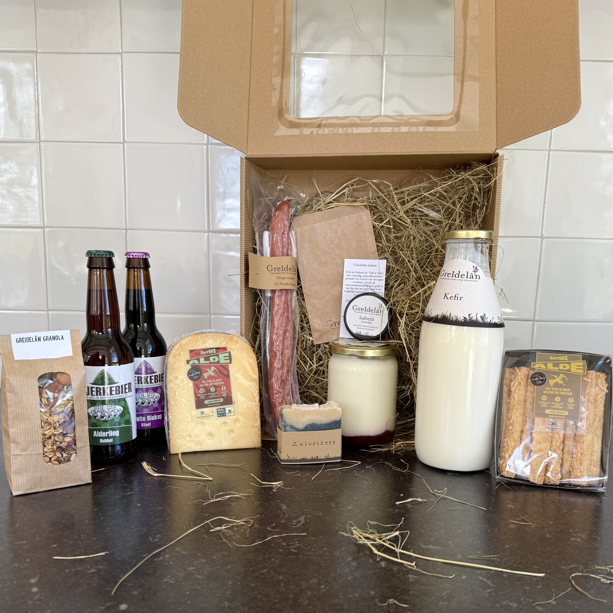 Ga deze kerst voor streekbeleving en kies voor onze zorgvuldig samengestelde kerstpakketten, gevuld met pure smaken en ambacht uit de regio. Natuurlijk ontbreken onze eigen Greidelân producten daarbij niet.