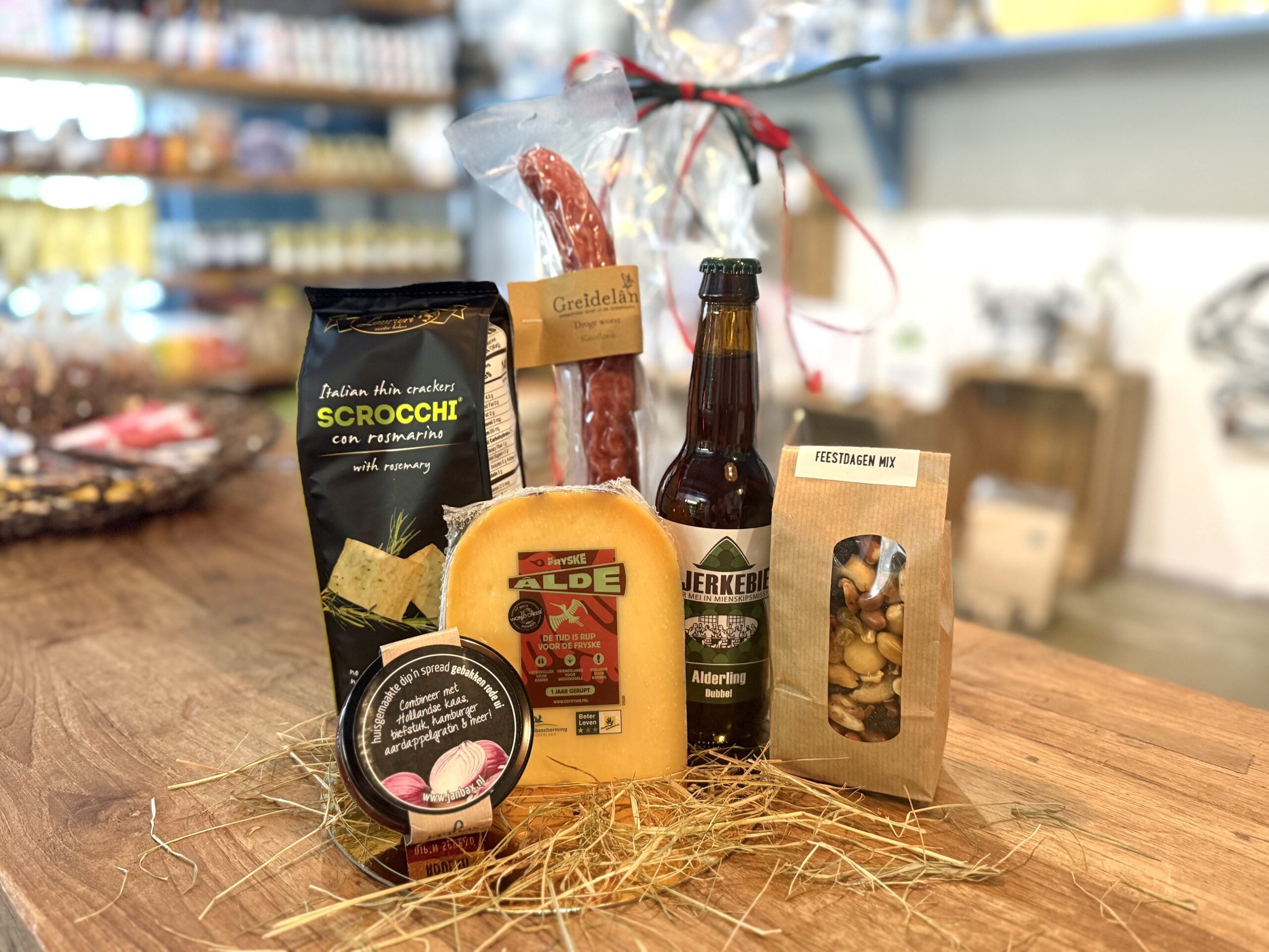 We maken met liefde de mooiste pakketten boordevol lokale lekkernijen. Wil je zelf samenstellen en een pakket op maat? We denken graag met je mee. Kom gezellig langs in de winkel en bewonder onze kersttafel of neem contact op voor een afspraak.